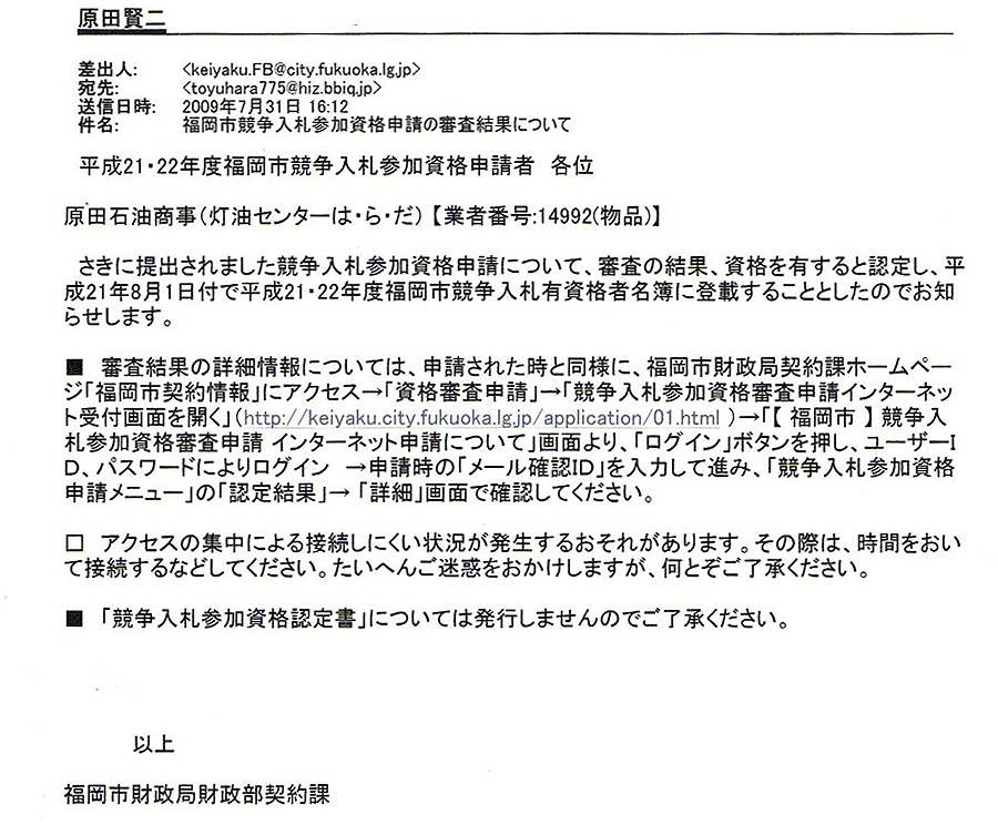 監査をやらせてもらっているのでサボれません。(笑い) 灯油の配達は、福岡市内に約3,000件。また、福岡市・福岡県入札資格を約10年保持いたしておりますので、価格は適切だと認められていると思います。